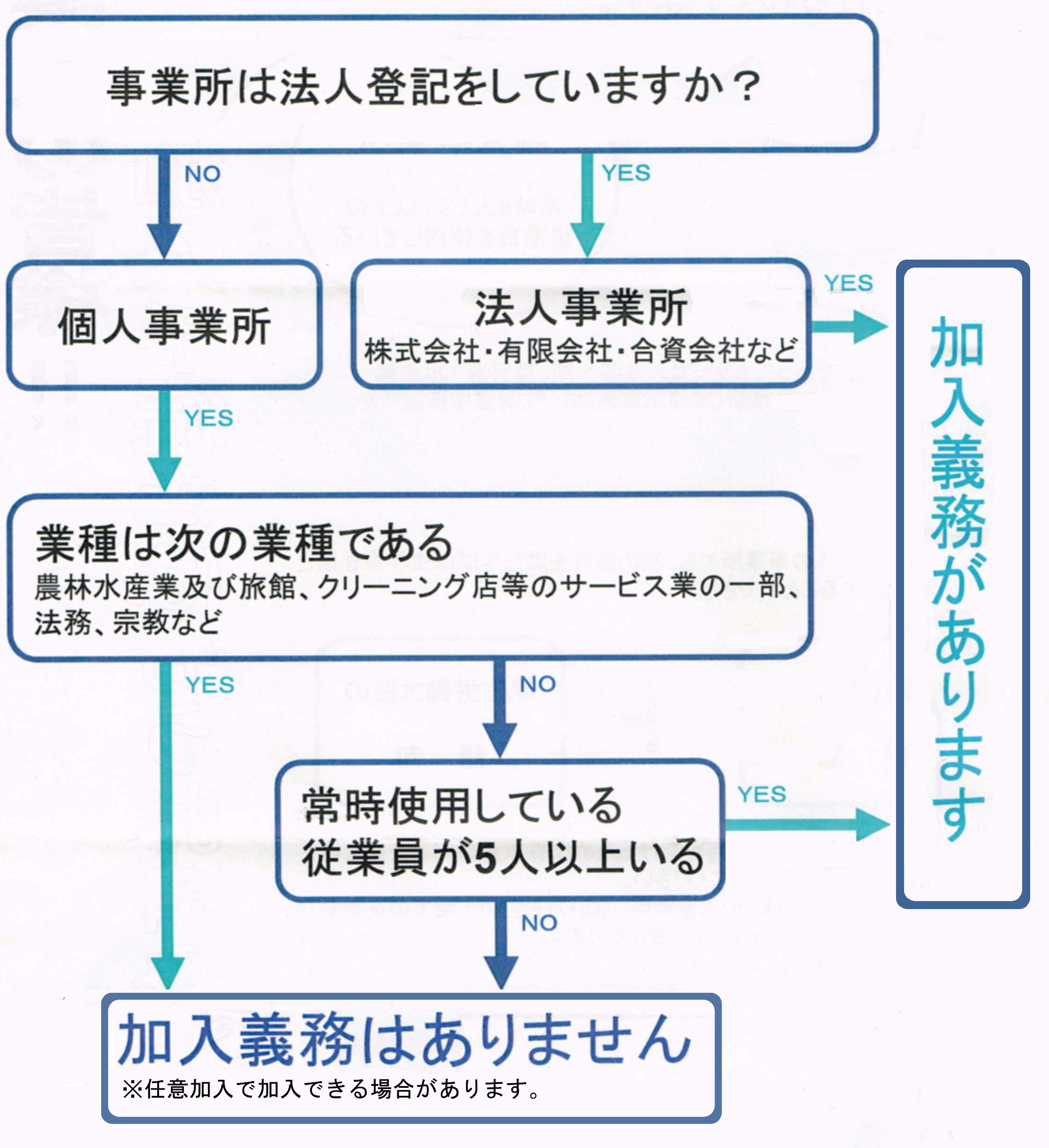 (一部例外がありますが個人事業主も従業員を5人以上使用していれば加入義務です)